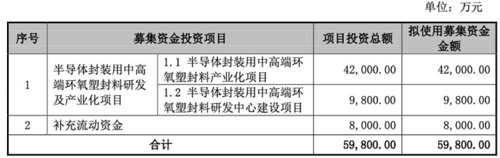 本次IPO,中科科化拟募资5.98亿元,用于半导体封装用中高端环氧塑封料研发及产业化项目。